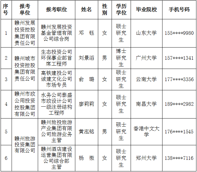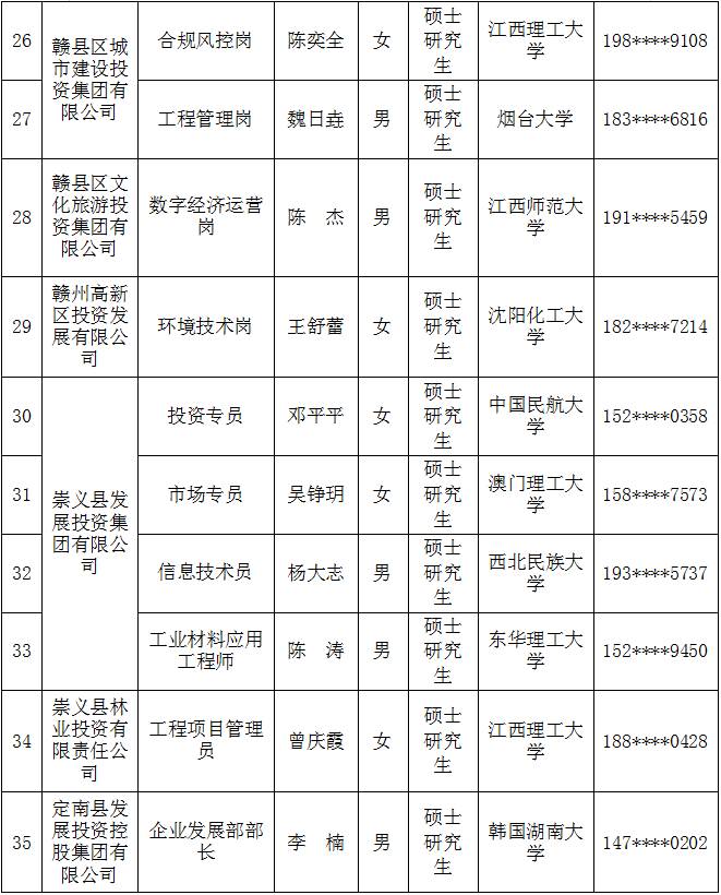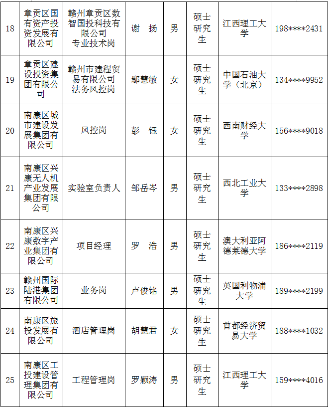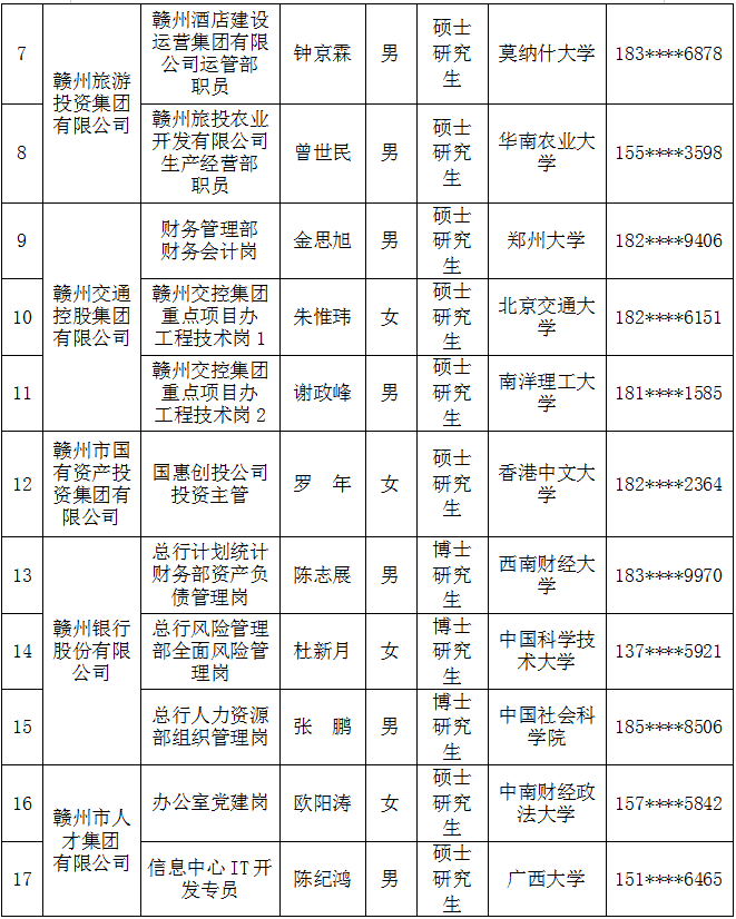【国资赣将】赣州市国有企业2025年组团引才(郑州站)拟录用人员名单公示