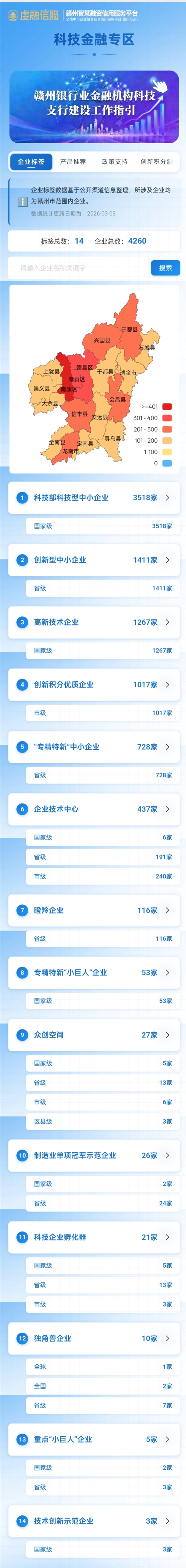 此前,赣州金融监管分局等六部门联合印发工作指引,明确要求依托“虔融信服”平台向科技支行共享科技型企业相关信息,为科技信贷评审提供信息支撑。此次专区上线,正是紧扣政策要求、深化科技金融服务的具体实践,聚焦破解银企信息不对称、科创企业融资难等痛点,打通政银企信息壁垒。
